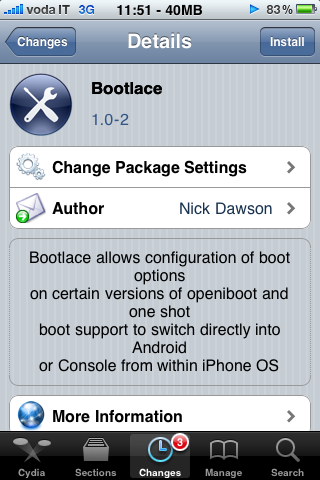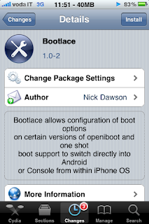 Probably the most easiest way to install Android on an iPhone 2G/3G is via iPhoDroid,But the problem with it is; you should have a computer to run the whole process of installing Android on your iPhone 2G/3G. But thanks to Bootlace 2.1, you can now install Android 2.2.1 Froyo on your jailbroken iPhone without needing to connect it to any PC or Mac!